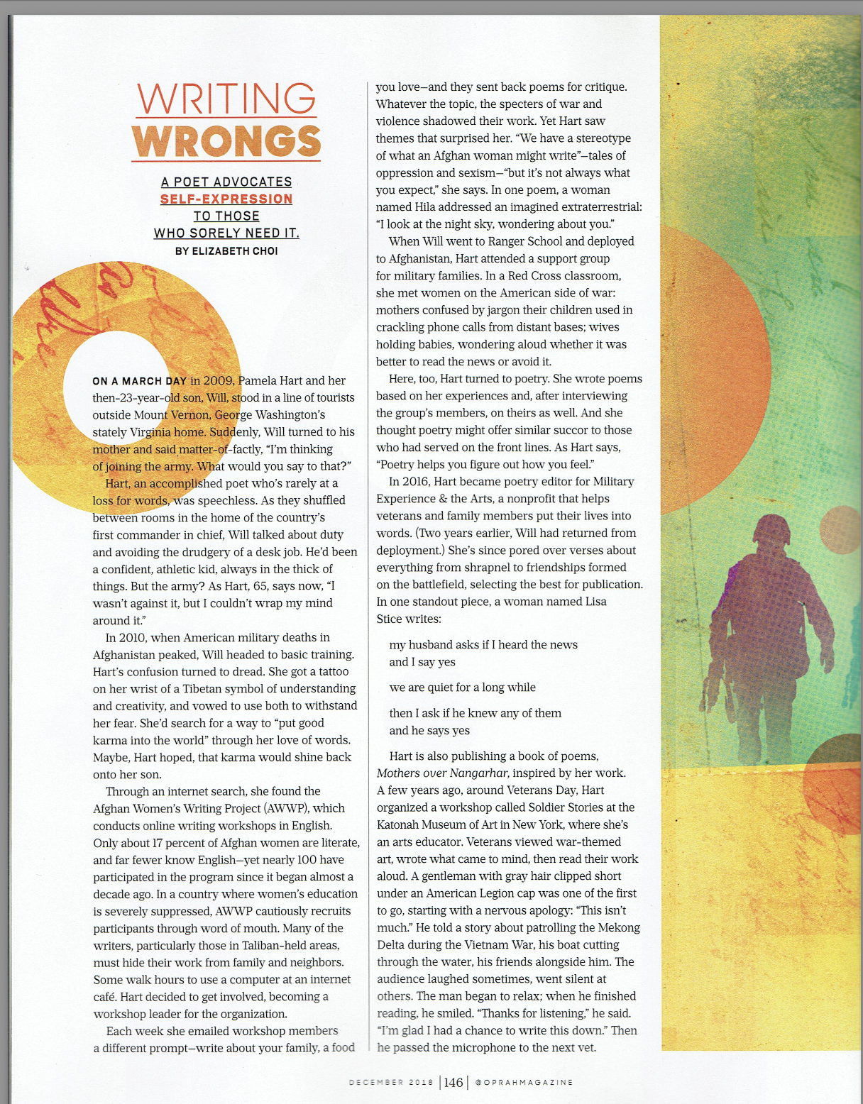 O Magazine feature on my work as writing mentor to Afghan women and vets.